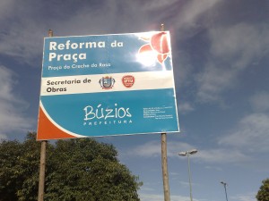 | A placa (acima) é da obra da praça do Cruzeiro, Rasa. Repare no tamanhozinho dos números do valor da obra. No local, de frente para a placa, os números são ilegíveis. Esse é o governo que defendeu, nas eleições, a transparência. |