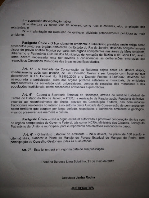 Nesse mesmo dia, o deputado Jânio Mendes também discursou sobre o mesmo tema- Mangue de Pedra- revelando o deputado que é. Como não consegui o vídeo transcrevo trechos do seu discurso publicado no site da ALERJ (