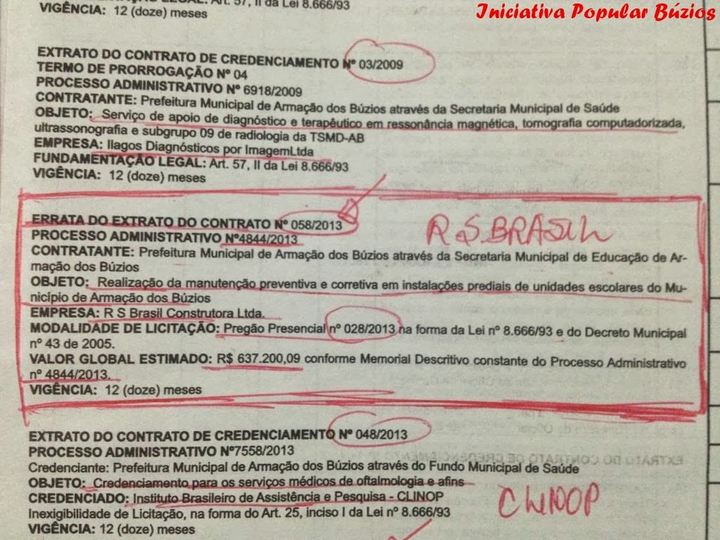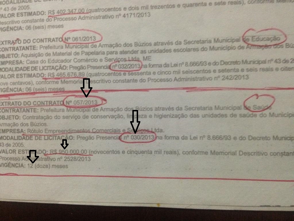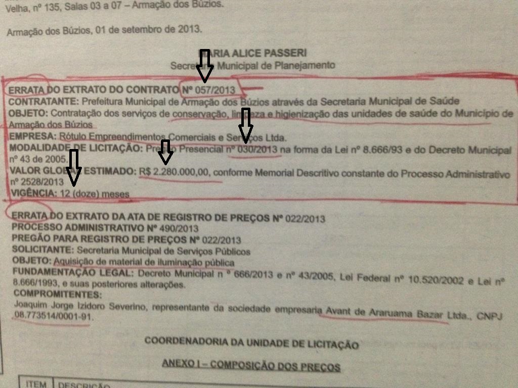 A errata foi feita sem nenhuma referência ao número do BO (BO 592) onde fora publicado o extrato do contrato a ser corrigido. Precisamos retroceder BO por BO até encontrar o extrato do contrato citado. O objeto, a empresa vencedora, o número do convite (21/2013) e o valor são os mesmos. A única diferença está no prazo que passou de 12 para 8 meses. Se os R$ 53.203,20 não for mensal- o BO não especifica o prazo-, passaremos a dispender R$ 6.650,40 por mês com o Jornal Diário da Costa do Sol. Antes da errata, gastávamos R$ 4.433,60.