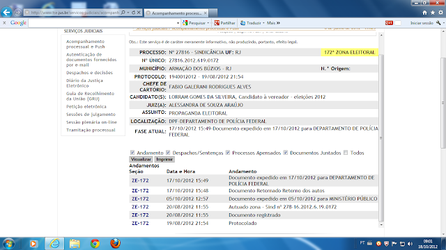 Terminado o processo eleitoral dei uma passadinha no site do TRE-RJ pra ver os "ossos" judiciais que sobraram da festa cívica do dia 7. No tribunal estadual temos 24 processos, sendo 2 mandatos de segurança (MS), 17 recursos eleitorais (RE) e 4 representações (RP). Um dos mandatos de segurança foi impetrado pela coligação de Mirinho contra a sentença da juíza de Búzios que proibiu bandeiras do PDT nos barcos estacionados na Orla Bardot. O outro foi da lavra do Centro Automotivo de Búzios interditado depois da carreata da campanha do Dr. André. Ambos, foram vitoriosos.