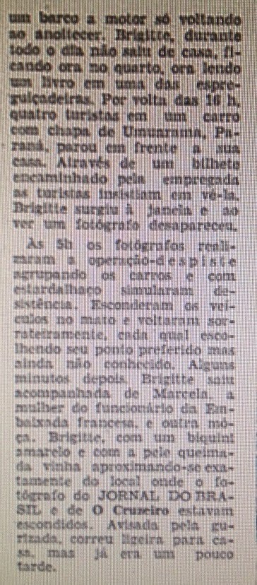 -o Prefeito de Cabo Frio, senhor Antônio Macedo de Castro vai propor à Câmara de Vereadores a doação de um terreno à atriz francesa, em Armação dos Búzios.