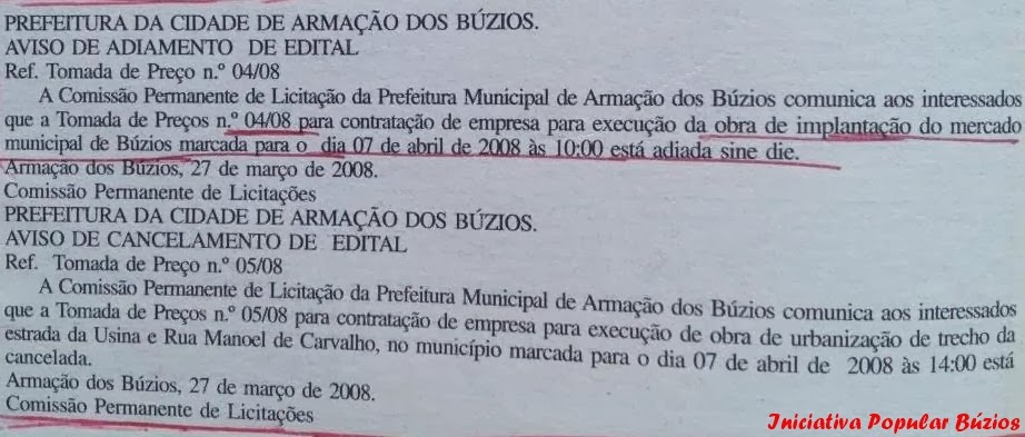 Parece que tudo o que foi feito até agora de nada valeu. Começa-se do zero, com nova licitação. Reparem que o objeto da licitação foi modificado para "conclusão da urbanização", na TP 001/2013 e "conclusão do Mercado Municipal" na TP 002/2013.
